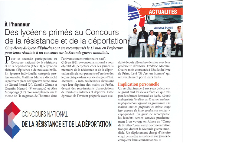 Des élèves récompensés au Concours National de la Résistance et de la Déportation